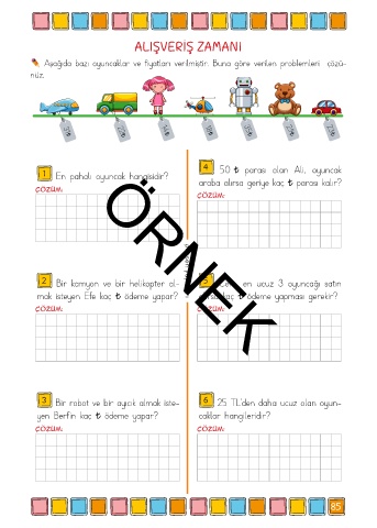 Aşağıda bazı oyuncaklar ve fiyatları verilmiştir. Buna göre verilen problemleri çözü-