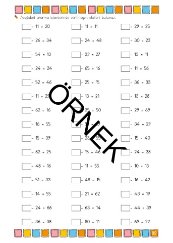 Aşağıdaki çıkarma işlemlerinde verilmeyen eksileni bulunuz. ÖRNEK 89
