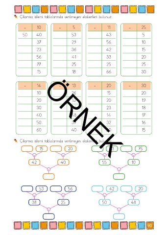 Çıkarma işlemi tablolarında verilmeyen eksilenleri bulunuz.