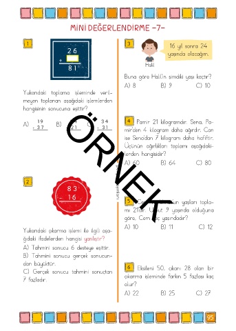 A) 19 B) 34 C) 34 4 Pamir 21 kilogramdır. Sena, Pa-