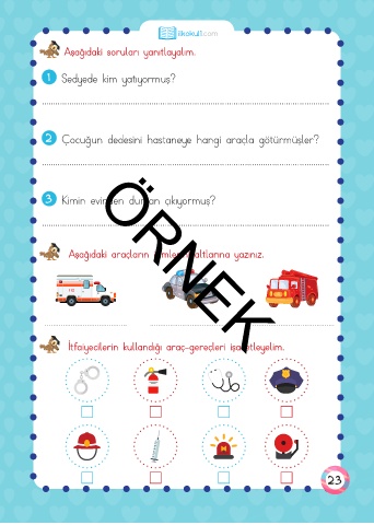 İtfaiyecilerin kullandığı araç-gereçleri işaretleyelim.