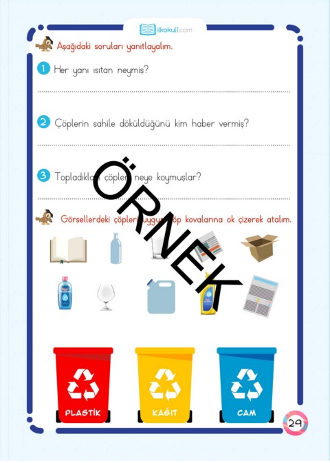 Görsellerdeki çöpleri uygun çöp kovalarına ok çizerek atalım.