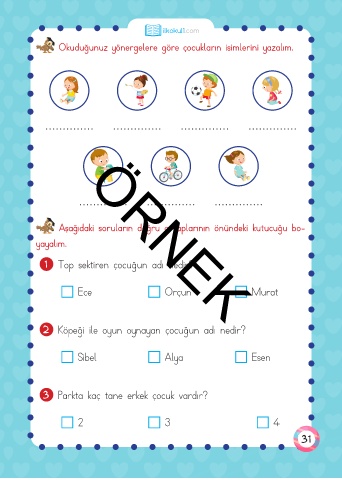 Okuduğunuz yönergelere göre çocukların isimlerini yazalım.