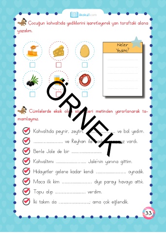 Çocuğun kahvaltıda yediklerini işaretleyerek yan taraftaki alana
