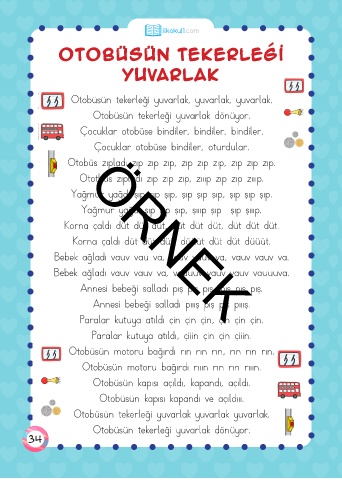 Otobüsün tekerleği yuvarlak, yuvarlak, yuvarlak.