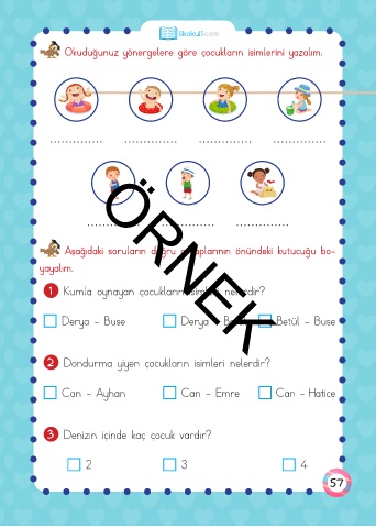 Okuduğunuz yönergelere göre çocukların isimlerini yazalım.