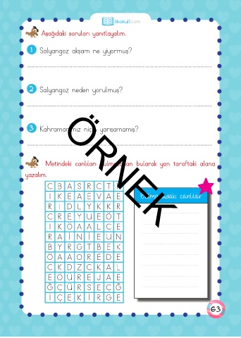 Metindeki canlıları bulmacadan bularak yan taraftaki alana