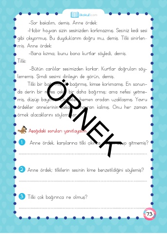 gibi çıkıyormuş. Bu duyduklarım doğru mu, demiş. Tilki sinirlen-