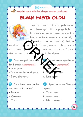 b. Vücudunda lekeler oluşmuş. b. Doktora götürmüş.