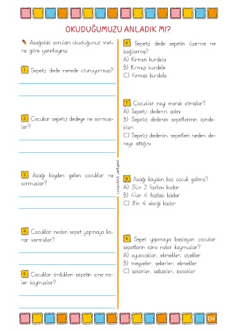 5 Çocuklar ördükleri sepetin içine ne- C) şekerler, sebzeler, içecekler