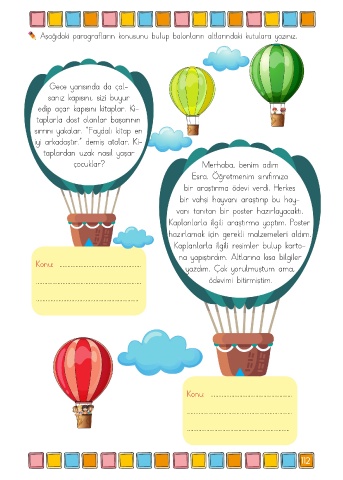 Aşağıdaki paragrafların konusunu bulup balonların altlarındaki kutulara yazınız.