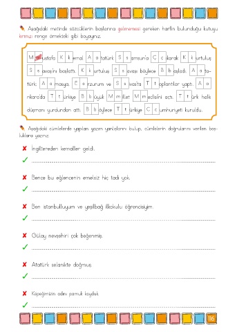 Aşağıdaki cümlelerde yapılan yazım yanlışlarını bulup, cümlelerin doğrularını verilen boş-