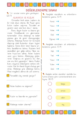 ALAKARGA VE KUŞLAR karşılarına yazınız. (5 P)