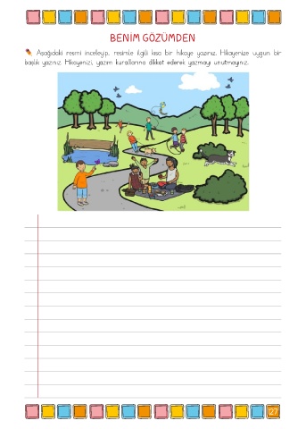 BENİM GÖZÜMDEN Aşağıdaki resmi inceleyip, resimle ilgili kısa bir hikaye yazınız. Hikayenize uygun bir başlık yazınız. Hikayenizi, yazım kurallarına dikkat ederek yazmayı unutmayınız. 127