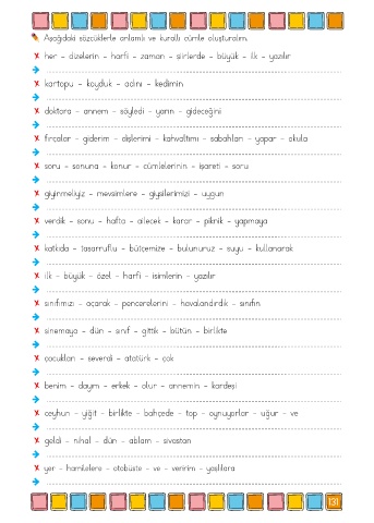 Aşağıdaki sözcüklerle anlamlı ve kurallı cümle oluşturalım.