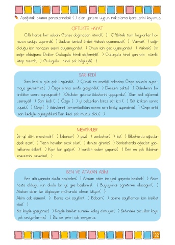 Aşağıdaki okuma parçalarındaki ( ) olan yerlere uygun noktalama işaretlerini koyunuz.