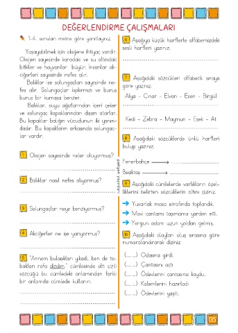 ciğerleri sayesinde nefes alır. 7 Aşağıdaki sözcükleri alfabetik sıraya