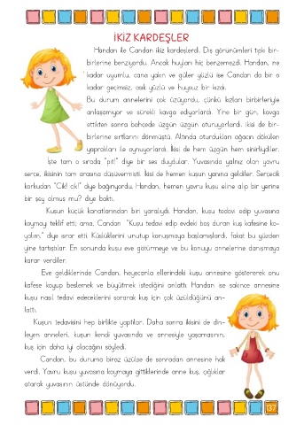 yine tartıştılar. En sonunda kuşu eve götürmeye ve bu konuyu annelerine danışmaya