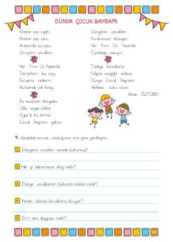 Aşağıdaki soruları, okuduğunuz şiire göre yanıtlayınız.