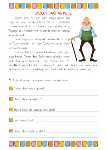 sözcükle bir şey anlatabildin mi?”diye sordu. Sevil “Evet.” dedi. Osman dede “Bazen