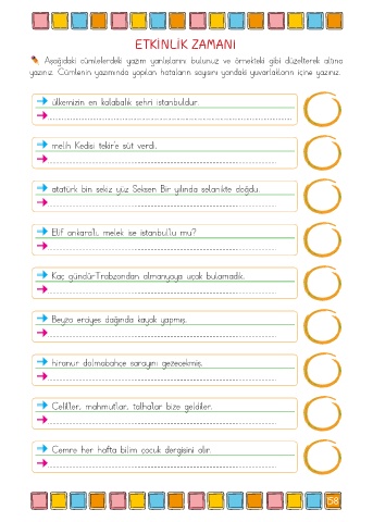 yazınız. Cümlenin yazımında yapılan hataların sayısını yandaki yuvarlakların içine yazınız.