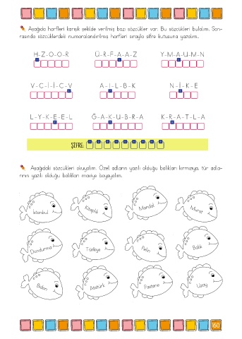 Aşağıdaki sözcükleri okuyalım. Özel adların yazılı olduğu balıkları kırmızıya, tür adla-