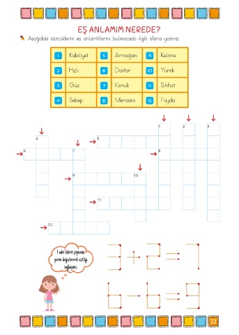 Aşağıdaki sözcüklerin eş anlamlılarını bulmacada ilgili alana yazınız.