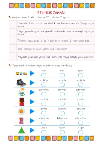 Görsellerdeki sözcüklerin doğru yazıldığı kutucuğu işaretleyiniz.