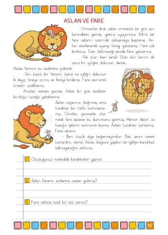 ki deyip fareye acımış ve fareyi bırakmış. Fare sevinerek
