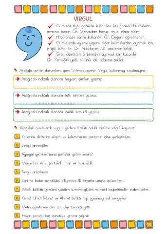 Aşağıdaki cümlelerde uygun yerlere kırmızı renkli kalemle virgül koyunuz.