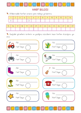 Aşağıdaki görsellerin isimlerini ve yazdığınız sözcüklerin kaçar harften oluştuğunu ya-