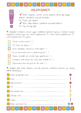 Aşağıdaki cümlelerin sonuna uygun noktalama işaretleri koyunuz. Cümlenin sonuna