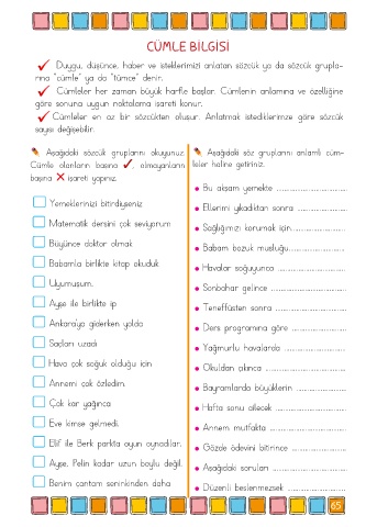 Cümleler en az bir sözcükten oluşur. Anlatmak istediklerimze göre sözcük