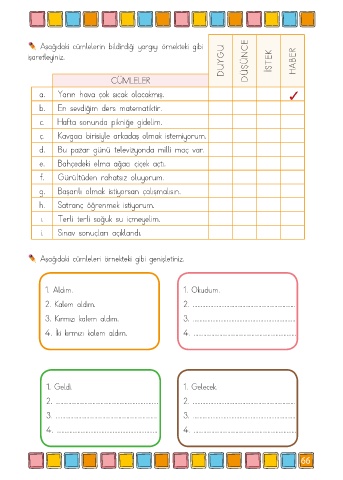 Aşağıdaki cümleleri örnekteki gibi genişletiniz.
