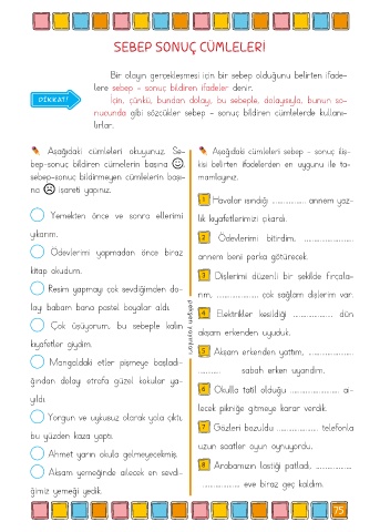 Aşağıdaki cümleleri okuyunuz. Se- Aşağıdaki cümleleri sebep - sonuç iliş-