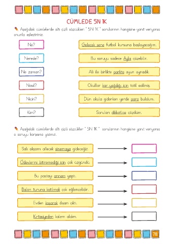 Aşağıdaki cümlelerde altı çizili sözcükleri ‘‘ 5N 1K ‘‘ sorularının hangisine yanıt veriyorsa