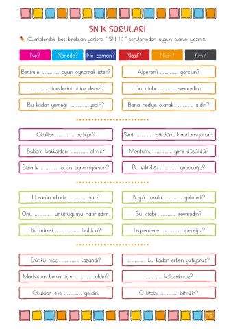 Cümlelerdeki boş bırakılan yerlere ‘‘ 5N 1K ‘‘ sorularından uygun olanını yazınız.
