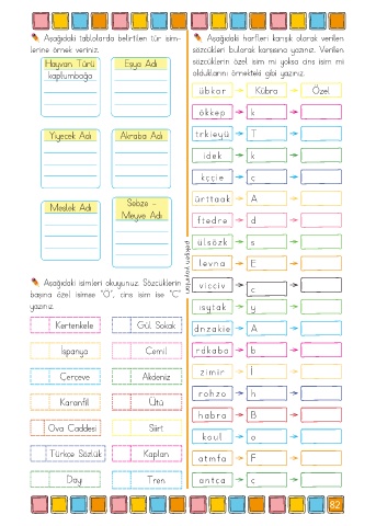 Aşağıdaki tablolarda belirtilen tür isim- Aşağıdaki harfleri karışık olarak verilen
