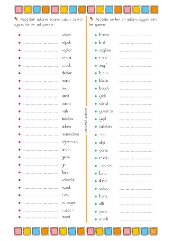 Aşağıdaki adların önüne özellik belirten Aşağıda verilen ön adlara uygun isim-