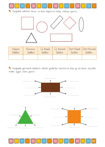 Aşağıdaki şekillerin kenar ve köşe sayılarına bakıp, tabloya yazınız.
