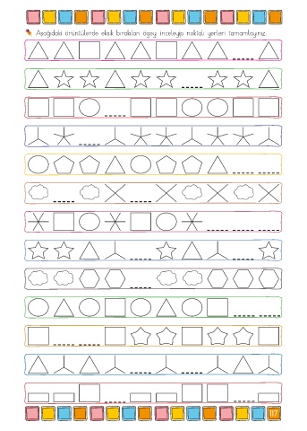 Aşağıdaki örüntülerde eksik bırakılan ögeyi inceleyip noktalı yerleri tamamlayınız. 117
