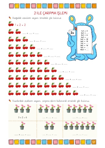 Vazolardaki çiçeklerin sayısını, çarpma işlemi kullanarak örnekteki gibi bulunuz.