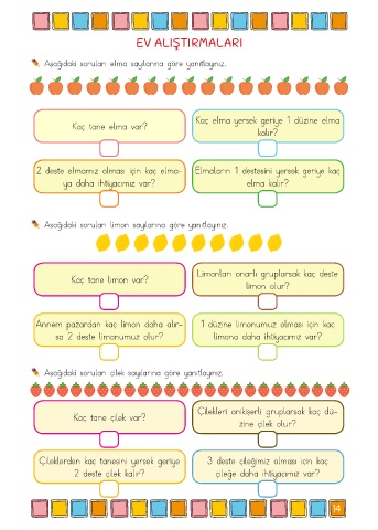 Aşağıdaki soruları limon sayılarına göre yanıtlayınız.