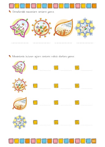 Mevsimlerde bulunan ayların isimlerini noktalı alanlara yazınız.