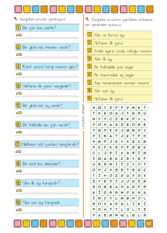 2 Bir yılda kaç mevsim vardır? 2 Haftanın ilk günü