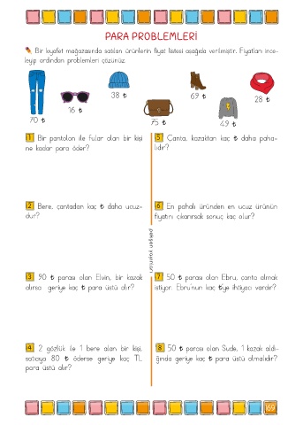 3 90 parası olan Elvin, bir kazak pekşen yayınları 7 50 parası olan Ebru, çanta almak