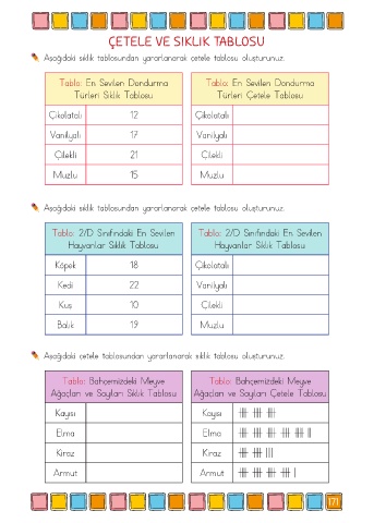 ÇETELE VE SIKLIK TABLOSU