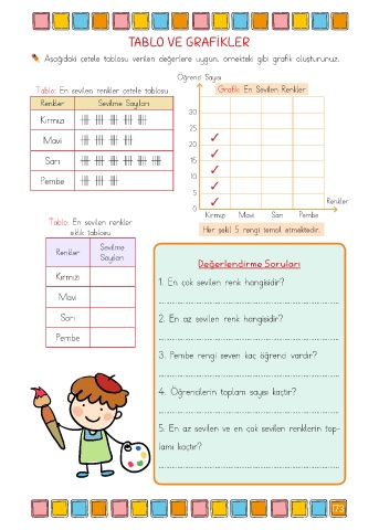 Tablo: En sevilen renkler çetele tablosu Grafik: En Sevilen Renkler