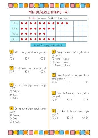 1 Merve’nin yediği elma sayısı kaç- 5 Hangi çocuklar eşit sayıda elma