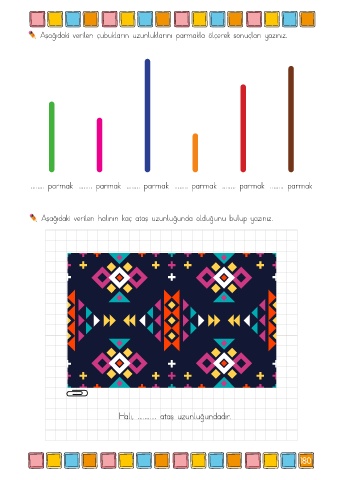 Aşağıdaki verilen çubukların uzunluklarını parmakla ölçerek sonuçları yazınız.